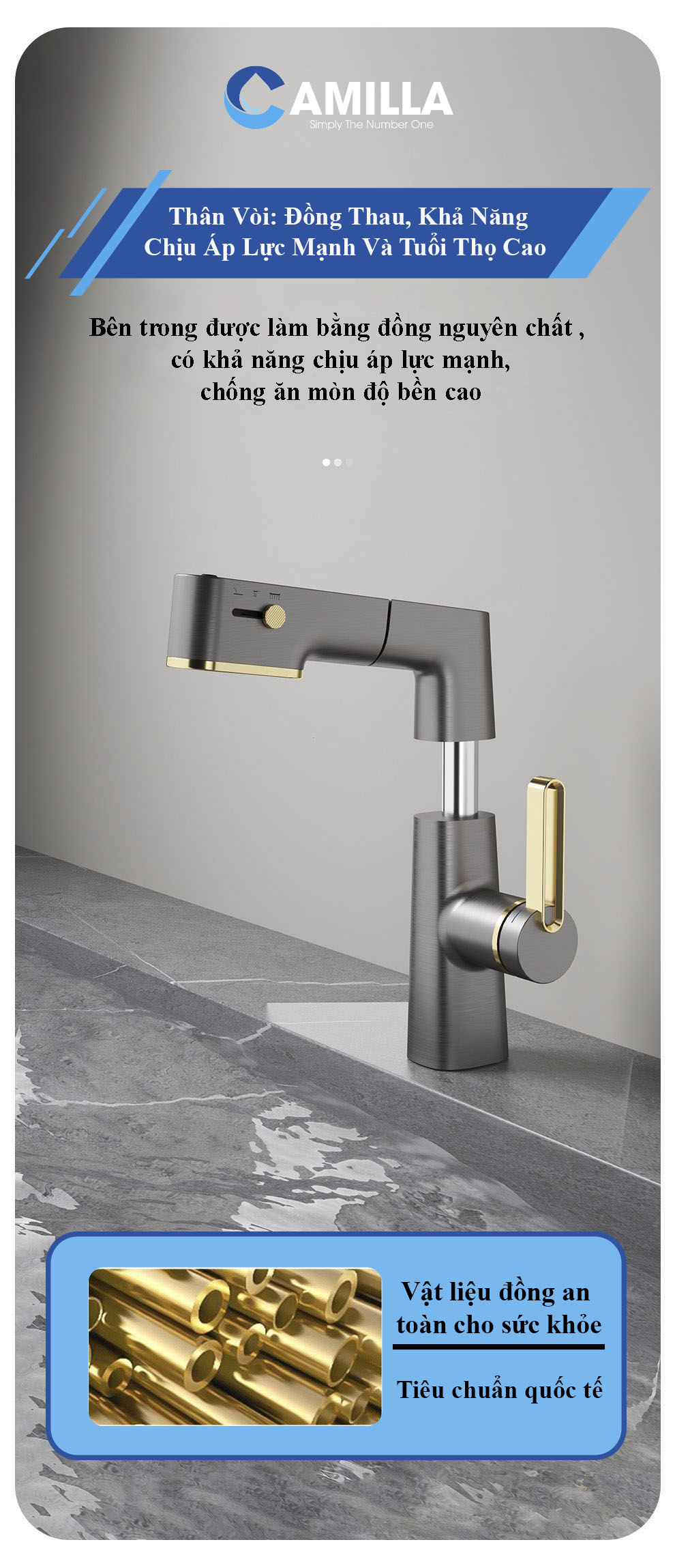 - Chất liệu: 80% là đồng thau mạ titan